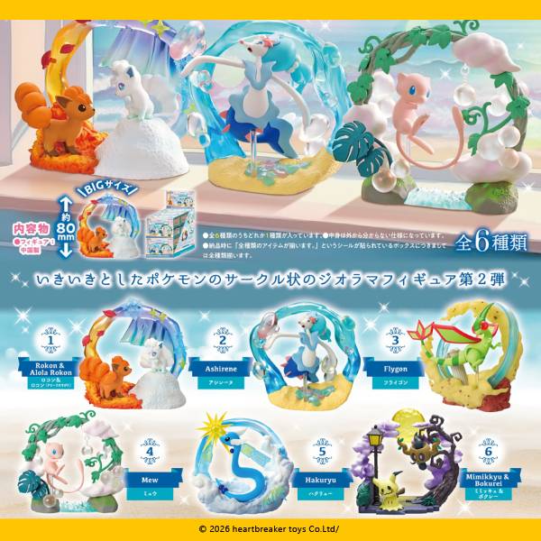 【 常規款 / 共 6 款 】 ☆ Rokon & Alola Rokon ☆ Ashirene ☆ Flygon ☆ Mew ☆ Hakuryu ☆ Mimikkyu & Bokurei ❚ 商品類型:盒玩 ❚ 商品尺寸:高約9cm ❚ 商品材質:PVC、ABS